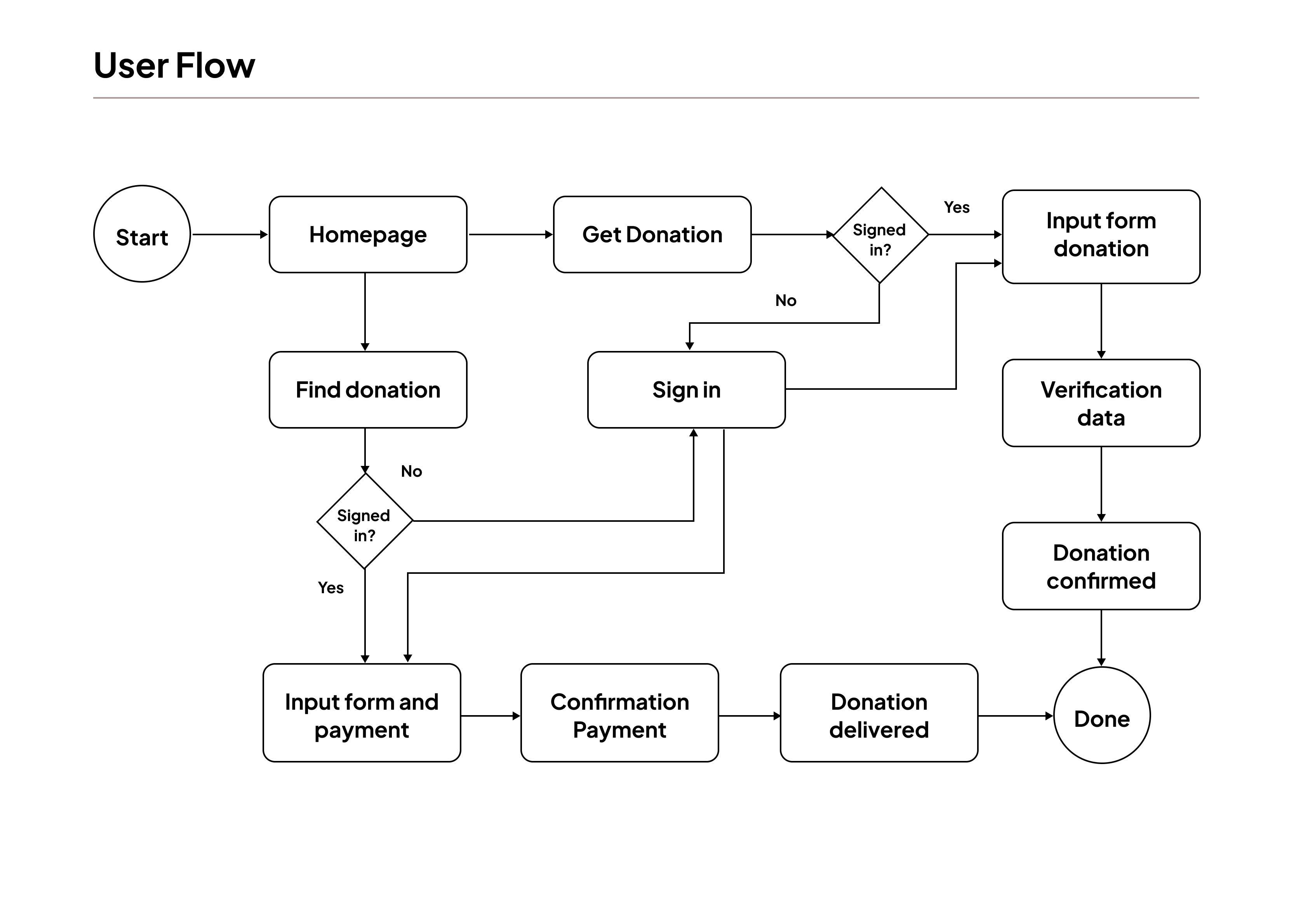 We created the user flow to help users understand each step of their journey and what they should do at each one.